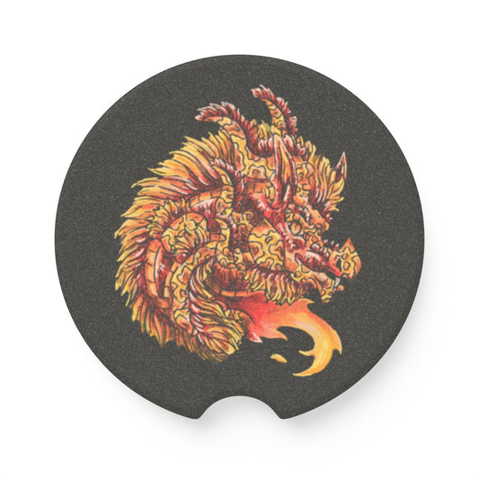 Fire Dragon Head Soapstone Car Coaster 2 PC