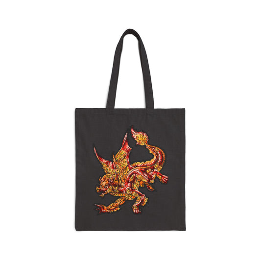 Fire Dragon Heads Cotton Canvas Tote Bag