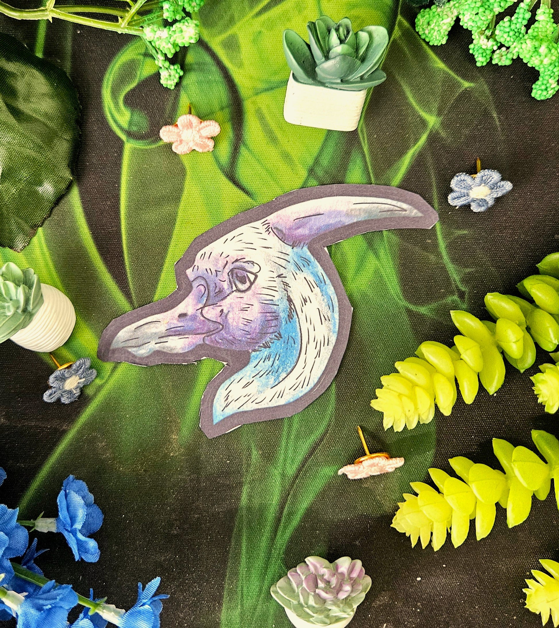 Siln brings a sense of freedom, strength, and quiet resilience to any space. She is perfect for dinosaur lovers, fantasy art collectors, and anyone drawn to sky creatures and ancient worlds. She can be useful for decorating surfaces or journals. Add a little prehistoric touch to your day.