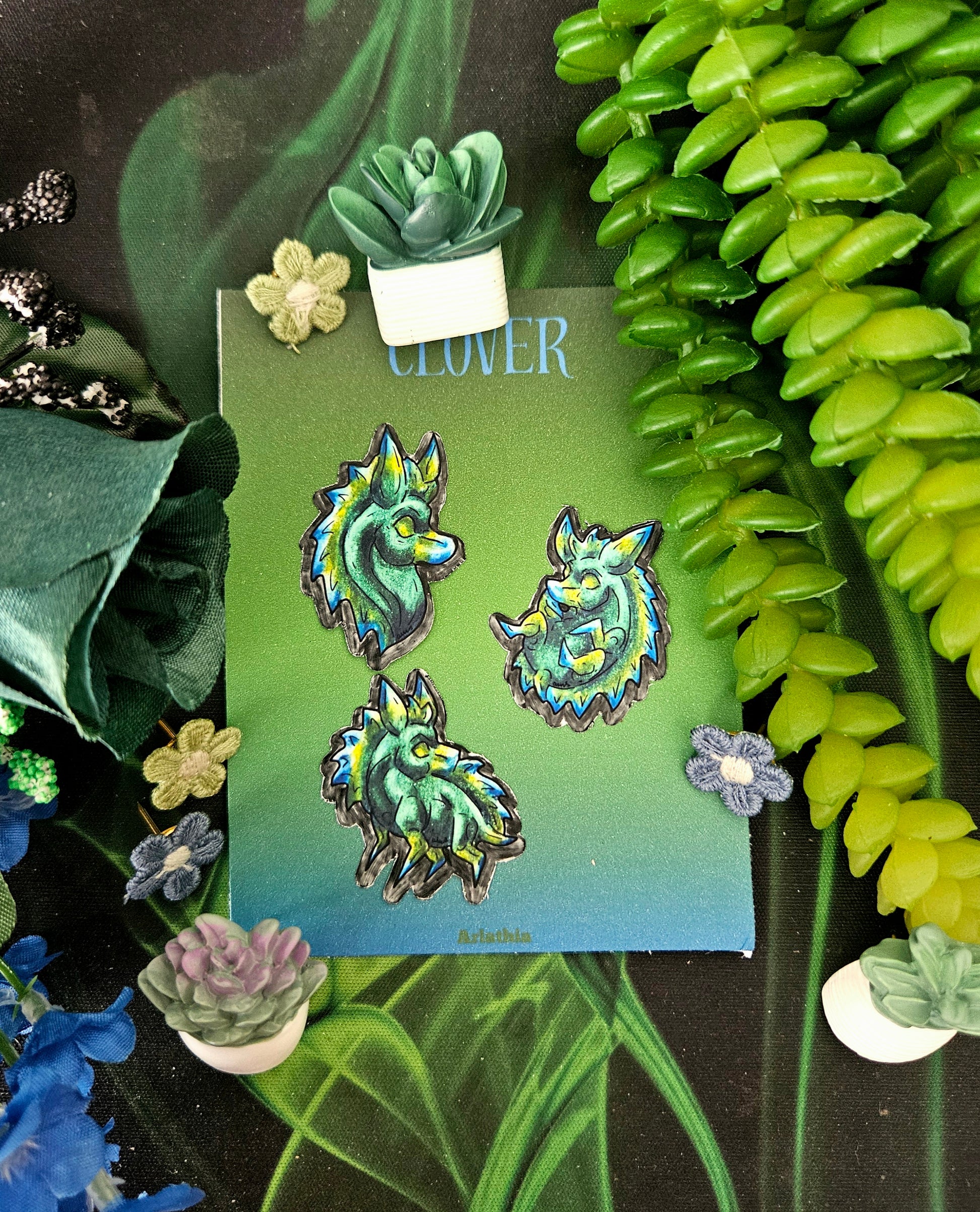 Take home these Minis Clover the Hedgehog stickers. They've been brought down to bite-sized, sharp cuties. They add a touch of spring with his green. He can make any surface a little more special with his sharp-edged cuteness. He adds a nice, subtle green touch to add a pop of color.