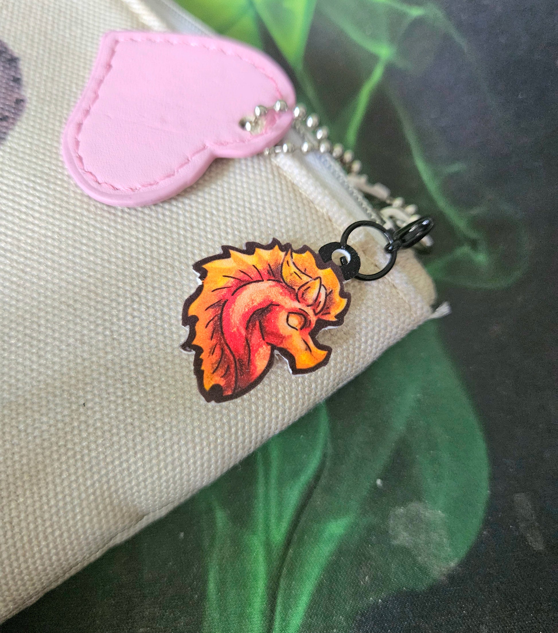 Here is the mini Fire Dragon as a charm. He is based off the original Fire dragon head and has been super simplified down to create a very cute character.