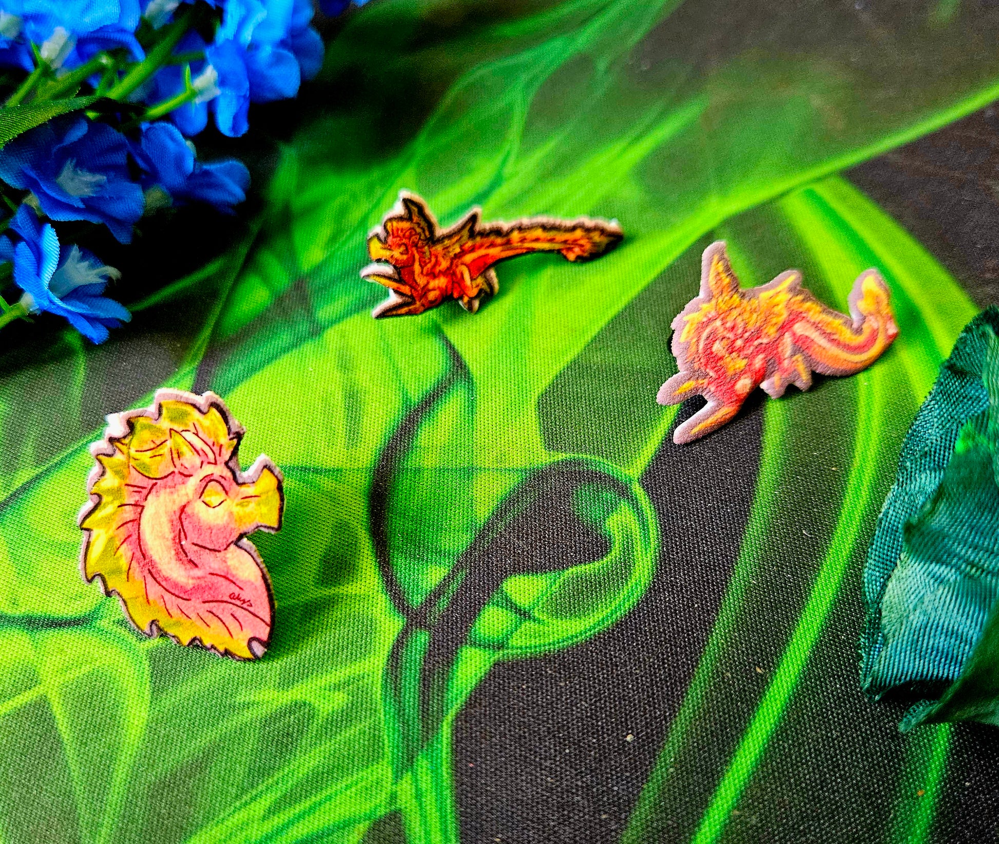 This is for the multi-pack of the mini Fire Dragon as pins. They are simplified down to bite-size cuties. You can't get any more fiery or cute than this! These little dragons can add a small, unique, warm touch as little accessories.