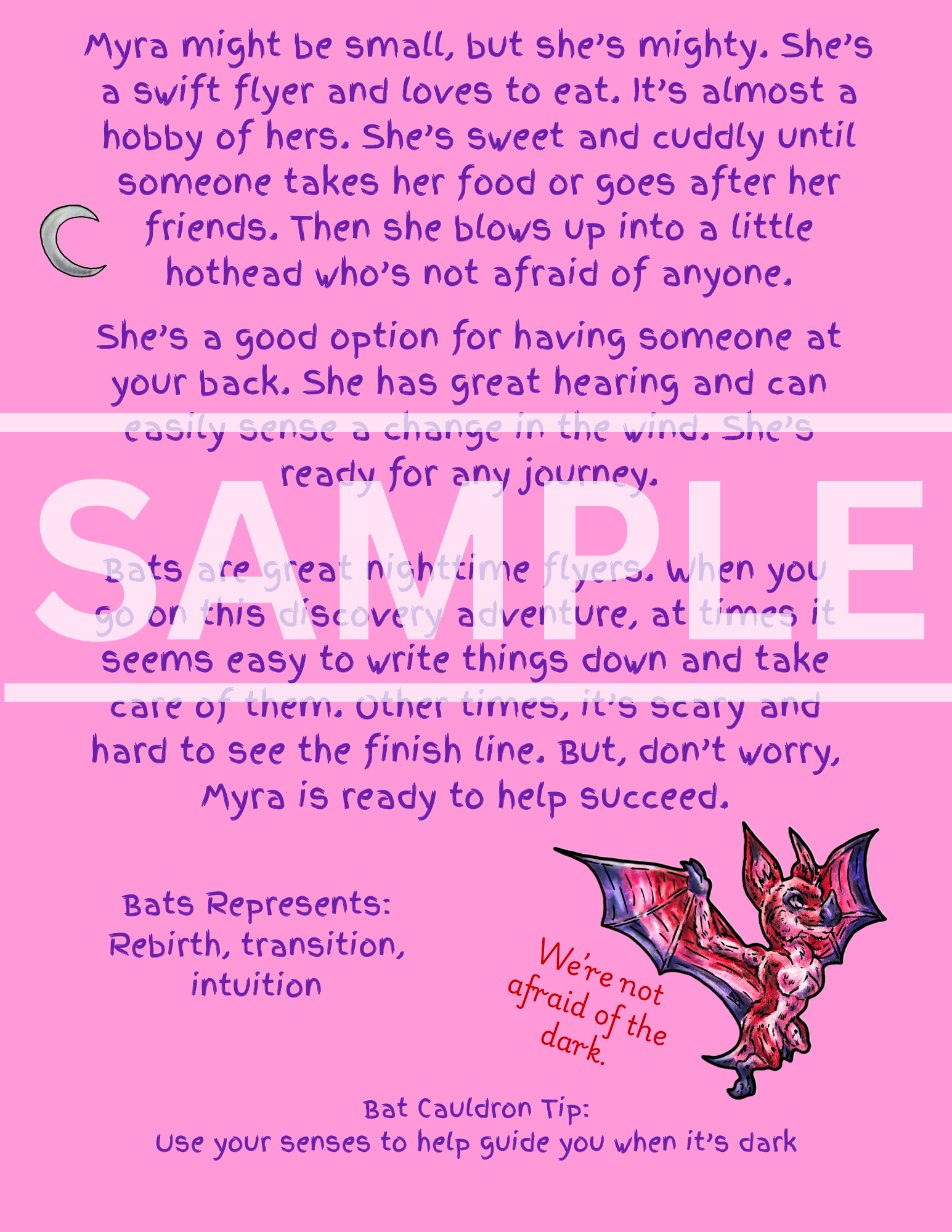 This little bat is excited to join your cauldron. She's here to back you up and stick with you on your monthly journey.