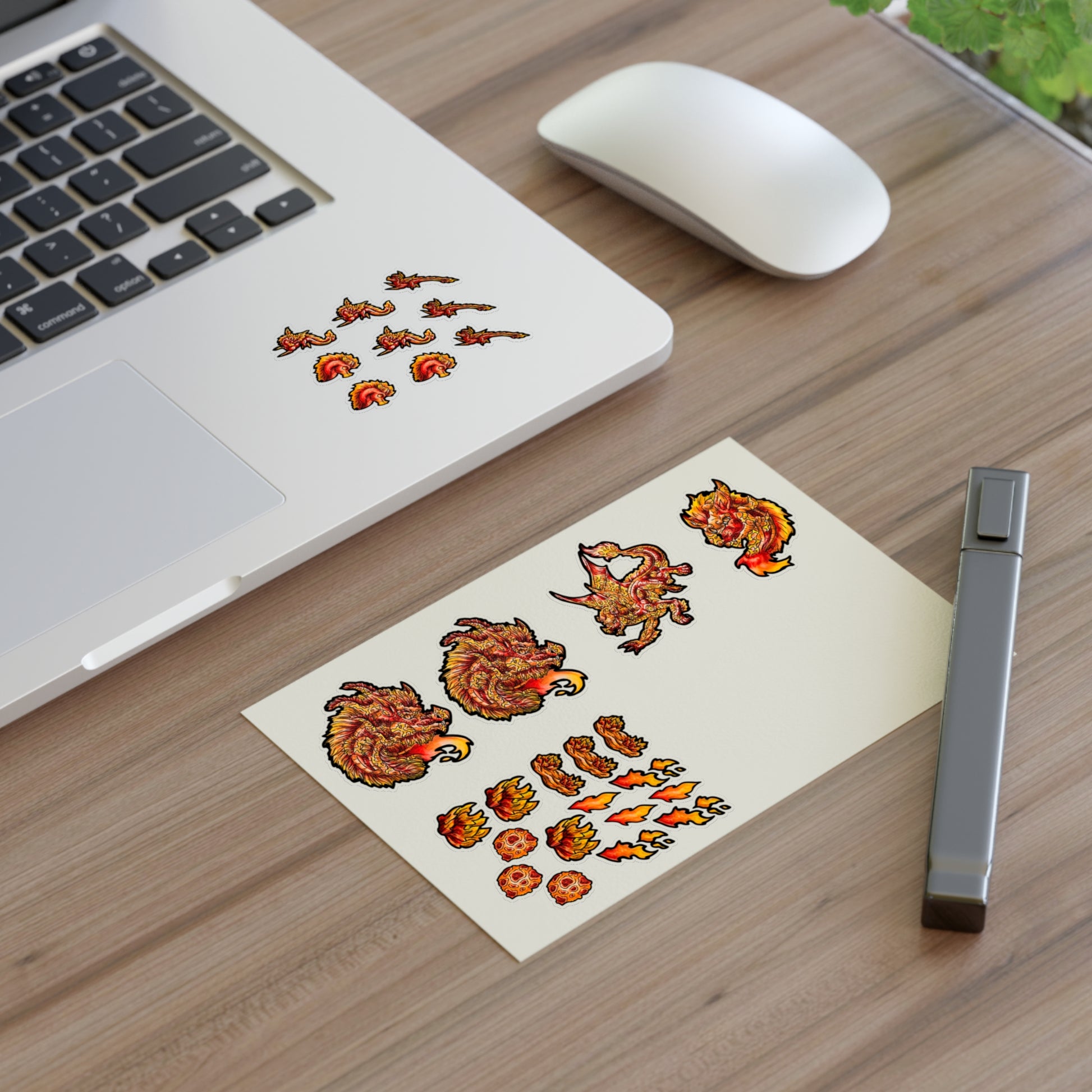 Here we have the Fire Dragon sticker sheet. You receive 28 stickers of the Fire Dragon in 3 styles along with extra little elements to add a little fiery and warm feeling wherever you stick them! He can add bright touches to decorate with and make things more unique!