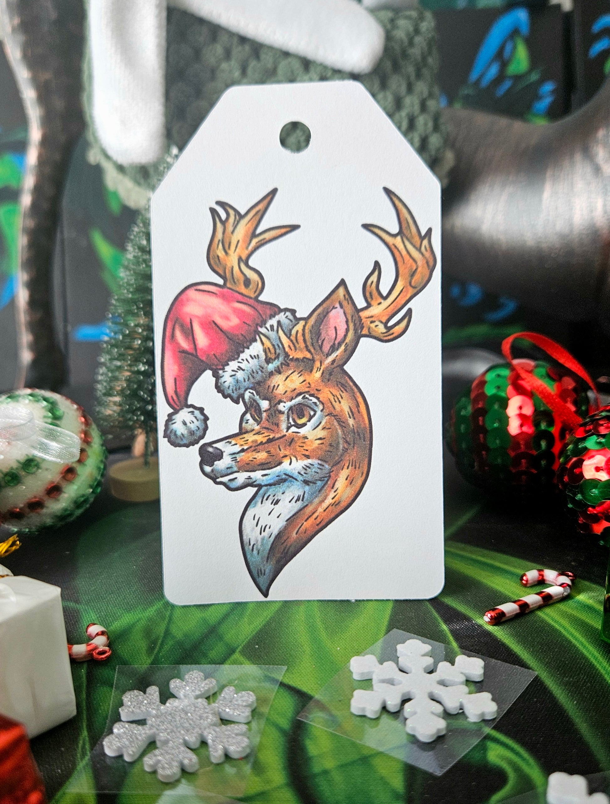 Here is a gift tag featuring Jingle the Deer. You are able to write on it and attach to gifts for a small, special touch. Feel free to use it to send those extra special touches on any Christmas gift.