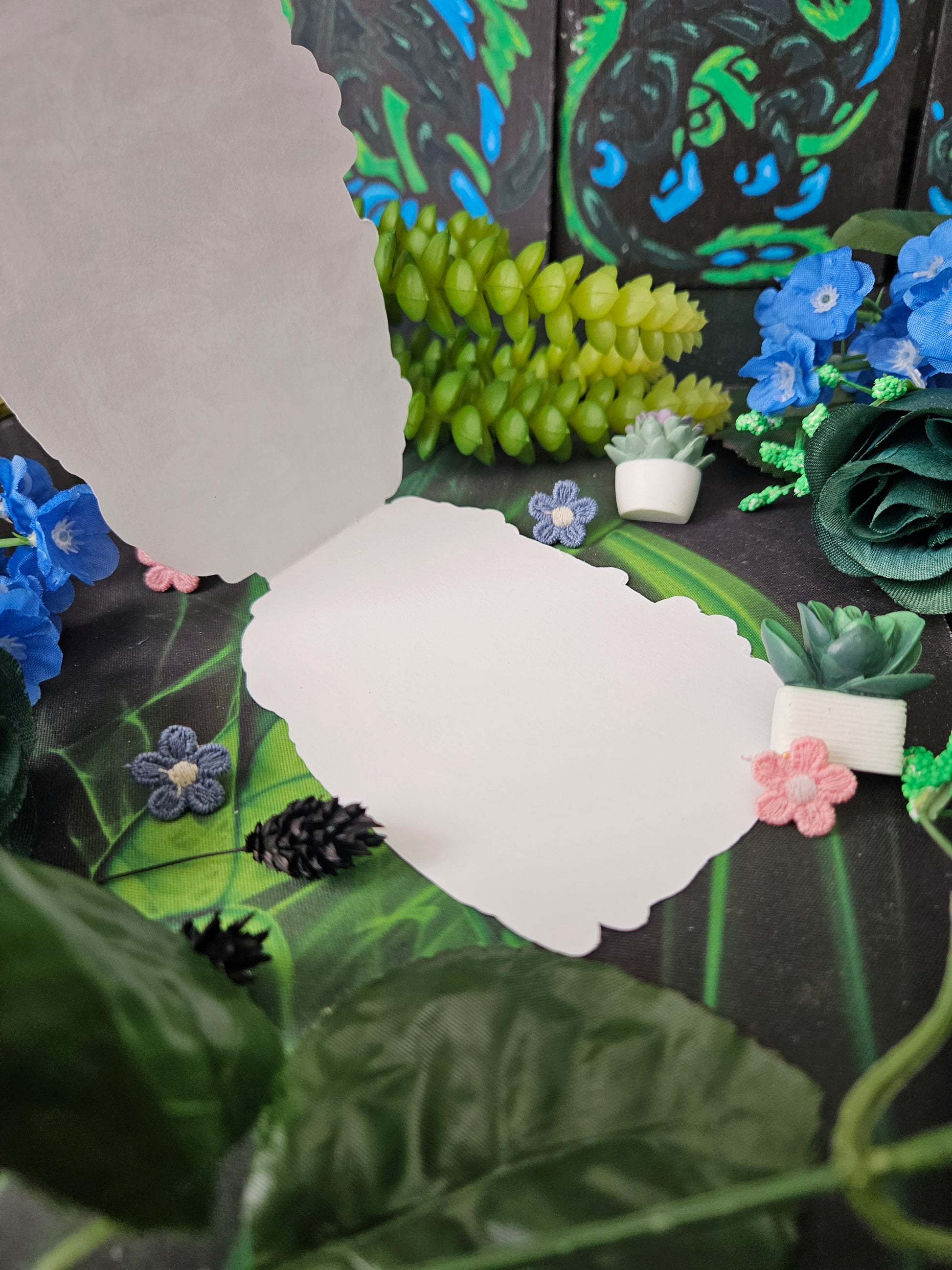 This greeting card is able to be personalized on the inside and on the back. You can write, draw pictures or add little designs to make the card unique.